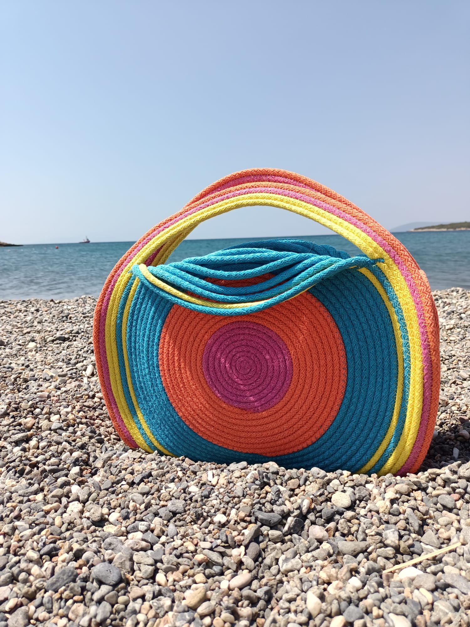 Gökkuşağı renklerinin bir araya getirildiği bu çanta, göz alıcı ve tarz sahibi tasarımıyla her ortamda dikkat çeker. Özellikle yaz aylarında plaj, piknik veya alışveriş gibi aktivitelerde kullanıma uygun olan bu çanta, size şık bir görünüm sağlar.
