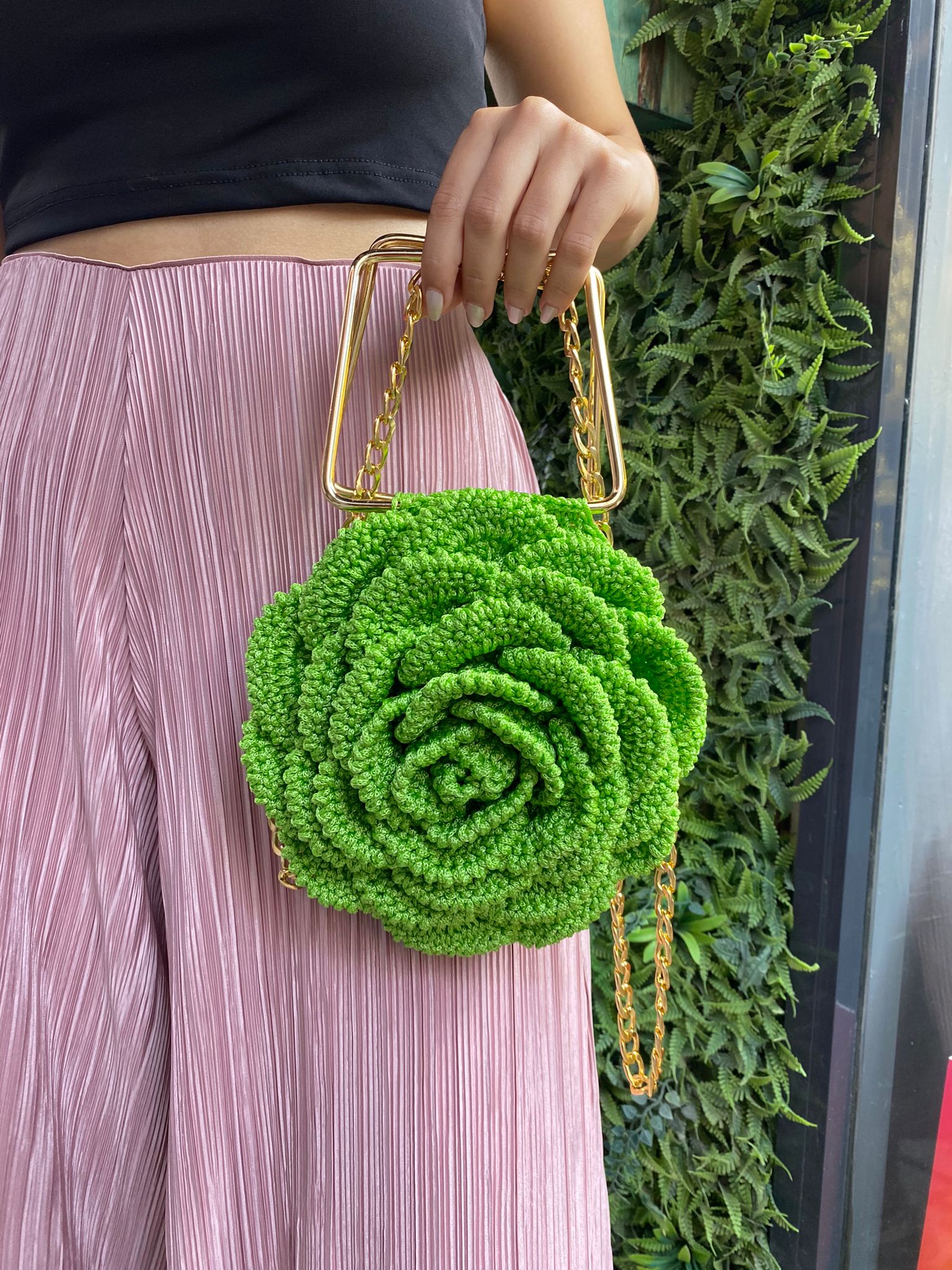 Gül desenli çanta , Makrome ip ile örüşmüş olup içi astarlanmıştır. Gold tutma yeri ve zinciri mevcuttur. Gece şıklığında ayrı gündüz şıklığında ayrı takabilirsiniz.