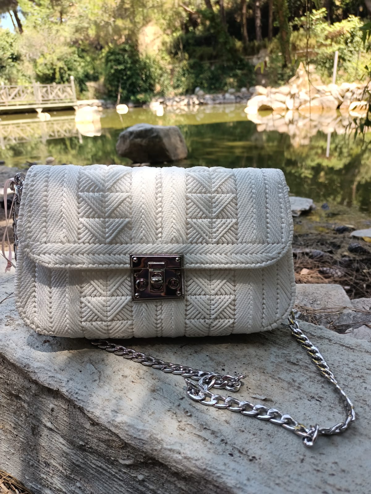 Kanvas şemalar üzerine her çeşit ipten işleme yapılan bu çantalar hem çok hafif hem oldukça zarif. Her şey ile kombin yapılabilir. Astarlıdır.